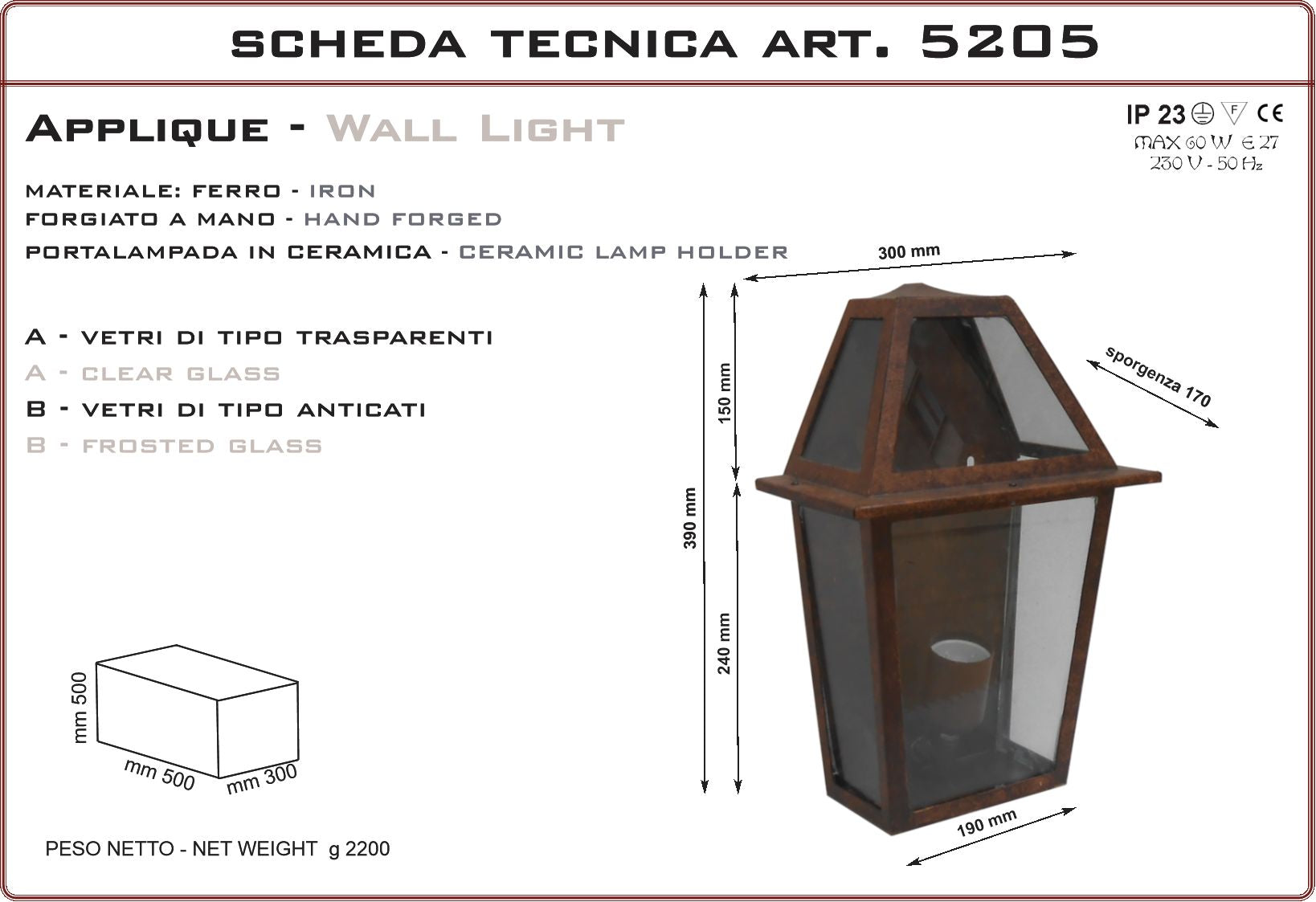 Lanterna da parete, in stile toscano, con tre facce illuminanti in vetro. Prodotto artigianale realizzato in Italia, particolarmente adatto per ville di campagna, casali in pietra , rustici, agriturismi , country houses, cascine, residenze d' epoca, masserie e masi. Portalampada in ceramica rivestito in ferro. La finitura, in ferro vecchio, è realizzata con cere antichizzanti color ruggine. Essendo eseguita a mano può avere differenti tonalità tra un prodotto e l’altro. É possibile sopraverniciare il prodotto con qualsiasi vernice o trattamento.