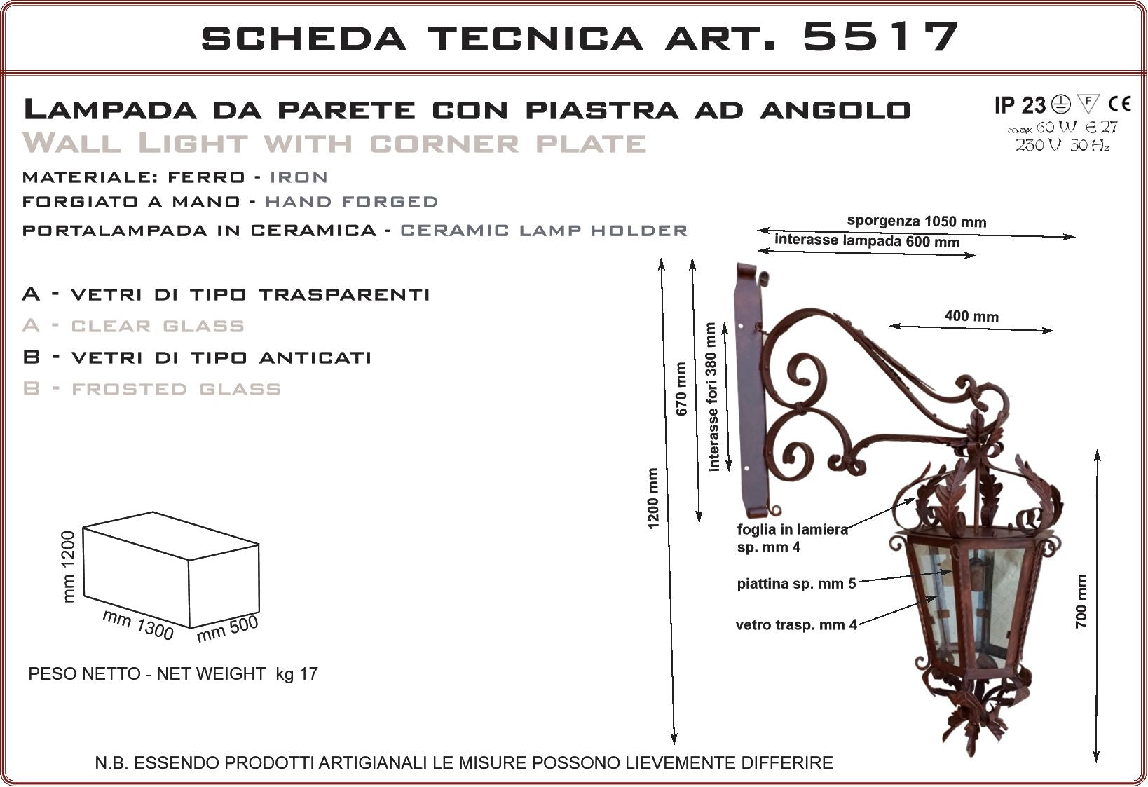 Lanterna da parete 5517 Wall light lantern 5517