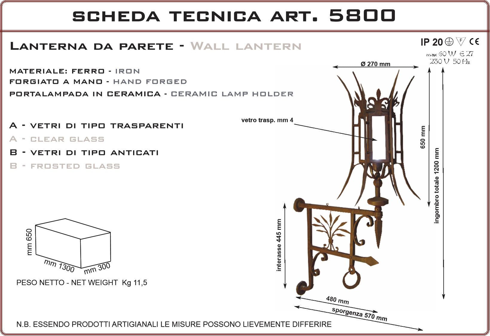 Lanterna da parete di medie dimensioni in ferro battuto, in stile medievale ed elegante forgiatura artigianale. Prodotto artigianale realizzato in Italia, particolarmente adatto per ville di campagna, casali in pietra e rustici, agriturismi e country houses, cascine, residenze d' epoca, masserie e masi. Portalampada in ceramica rivestito in ferro. La finitura in ferro vecchio, è realizzata con prodotti antiruggine e con cere antichizzanti. Essendo eseguita a mano e può avere differenti tonalità tra un prodotto e l’altro. É possibile sopraverniciare il prodotto con qualsiasi vernice o trattamento.