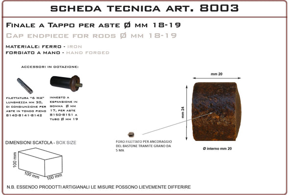Finale a tappo 8003 End cap 8003