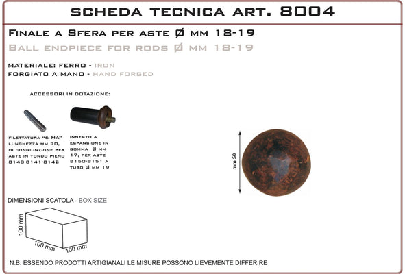 Finale a pomo 8002 Knob finial 8002
