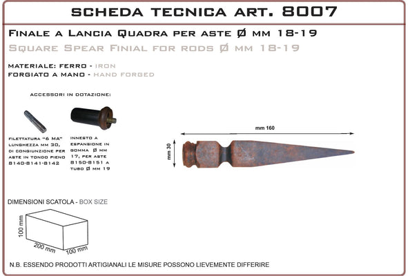Finale a lancia quadra 8007 Square spear finial 8007