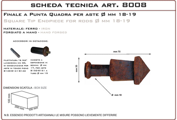 Finale a punta quadra 8008 Square tip finial 8008