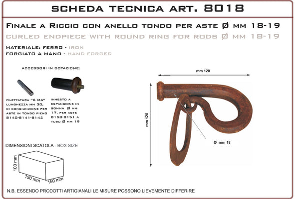 Finale a riccio con anello 8018 Curly finial with ring 8018