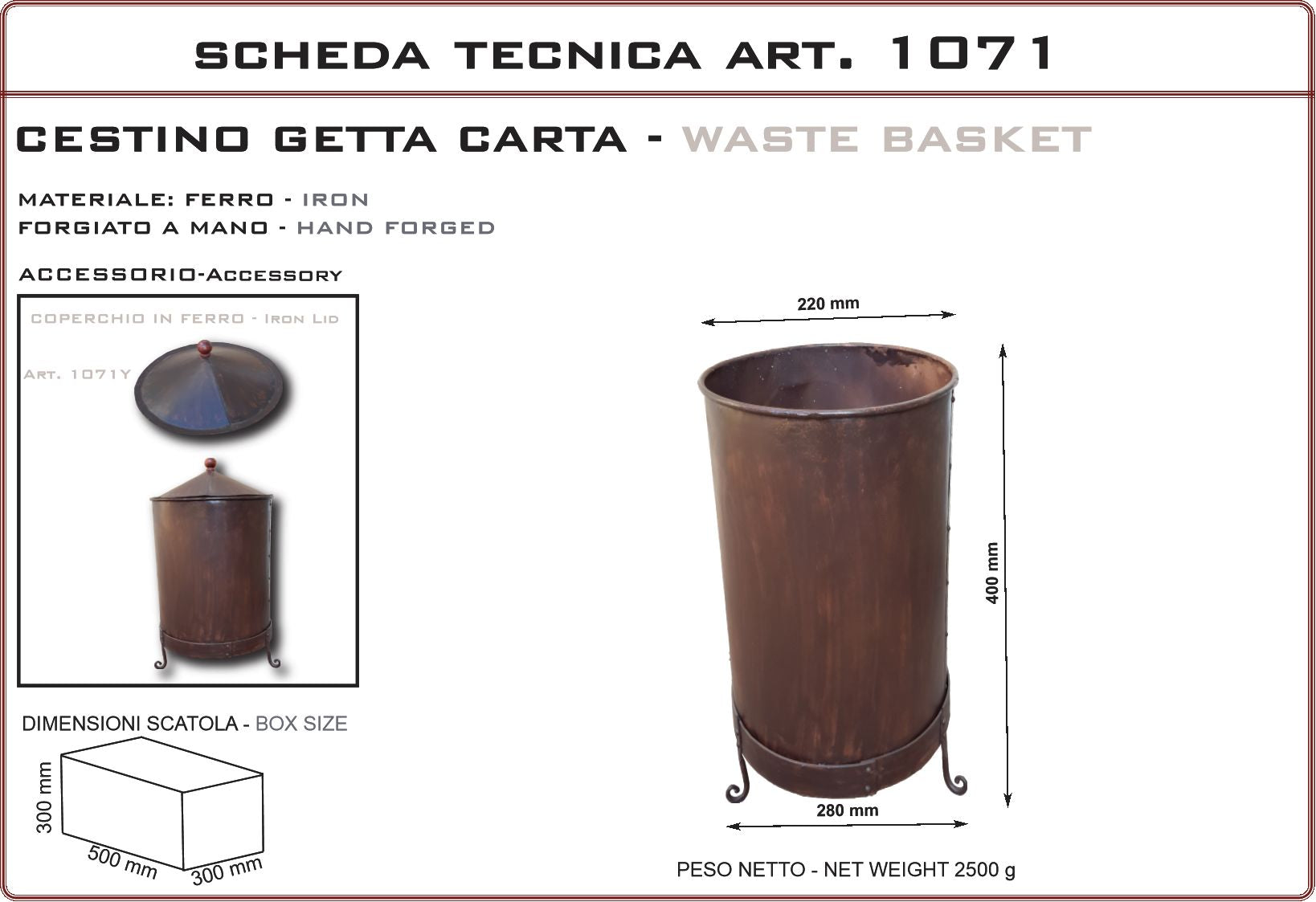 Cestino in ferro con piedini con ricci. Prodotto artigianale realizzato in Italia, particolarmente adatto per ville di campagna, casali in pietra e rustici, agriturismi e country houses, cascine, residenze d' epoca, masserie, masi. Finitura in ferro vecchio realizzata con prodotti antiruggine e finita con cere antichizzanti color ruggine. Essendo eseguita a mano può avere differenti tonalità tra un prodotto e l’altro. É possibile sopraverniciare il prodotto con qualsiasi vernice o trattamento.