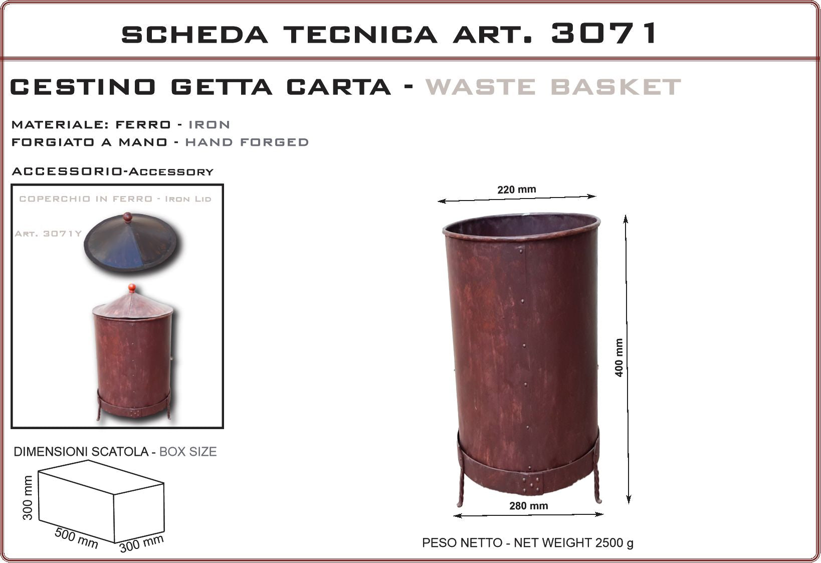 Cestino in ferro con piedini a treccia. Prodotto artigianale realizzato in Italia, particolarmente adatto per ville di campagna,  casali in pietra e rustici, agriturismi e country houses,  cascine, residenze d' epoca,  masserie, masi. Finitura in  ferro vecchio realizzata con prodotti antiruggine e finita con cere antichizzanti color ruggine. Essendo  eseguita a mano può avere  differenti  tonalità  tra un prodotto e l’altro. É possibile sopraverniciare il prodotto con qualsiasi vernice o trattamento.