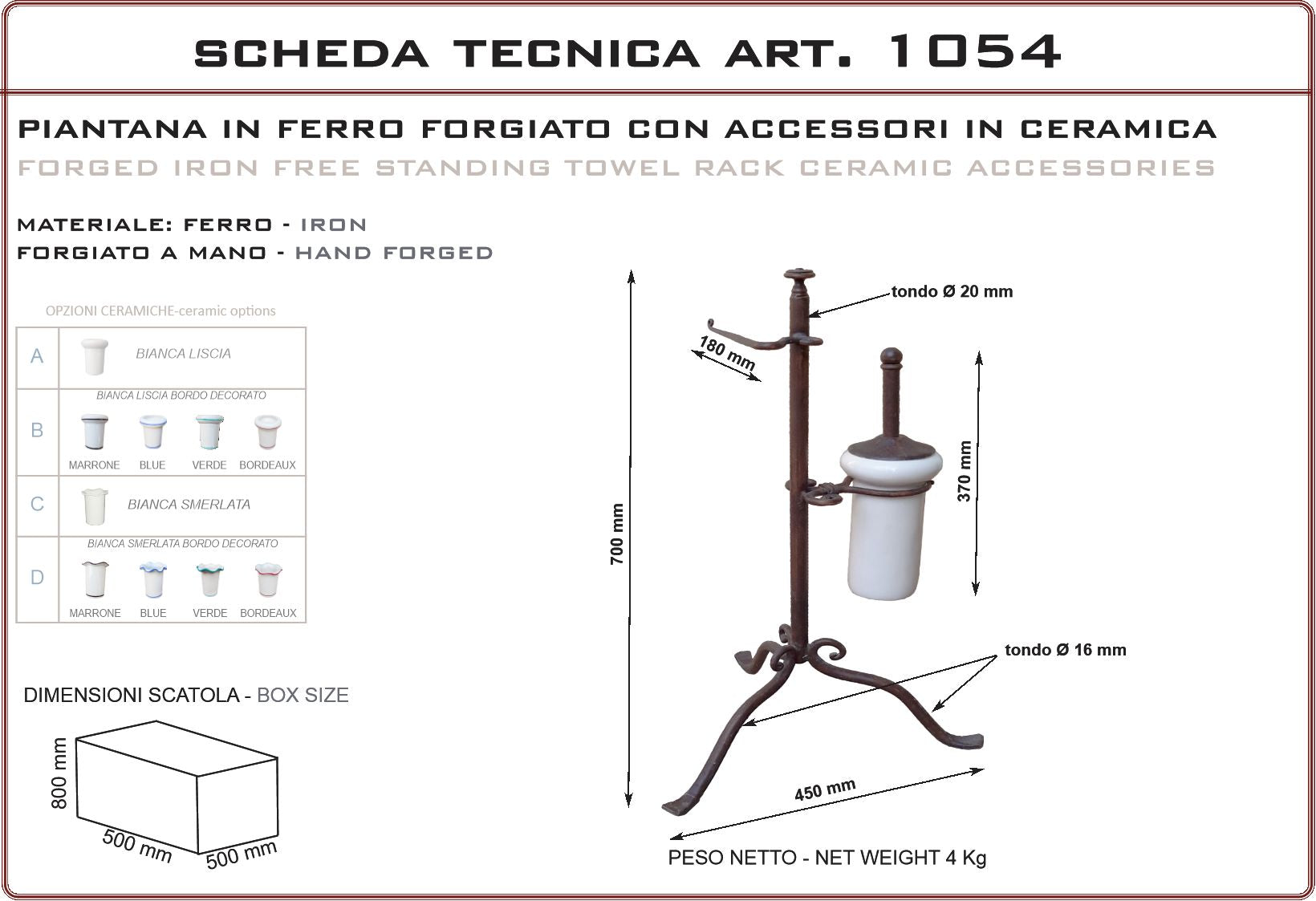 Piantana piccola in ferro forgiato con accessori in ceramica. Prodotto artigianale realizzato in Italia, particolarmente adatto per ville di campagna, casali in pietra e rustici, agriturismi e country houses, cascine, residenze d' epoca, masserie, masi. Finitura in ferro vecchio realizzata con prodotti antiruggine e finita con cere antichizzanti color ruggine. Essendo eseguita a mano può avere differenti tonalità tra un prodotto e l’altro. É possibile sopraverniciare il prodotto con qualsiasi vernice o trattamento.