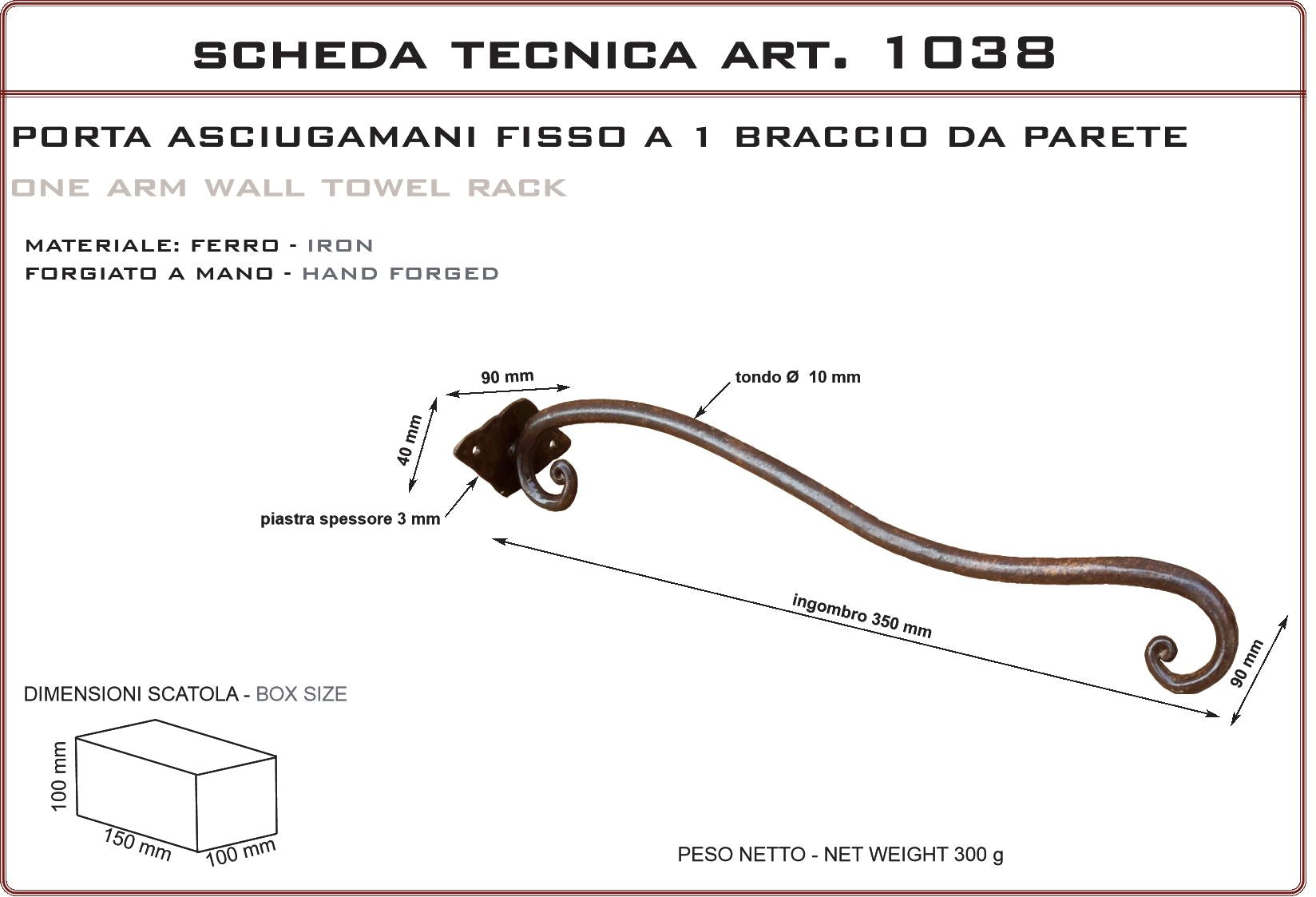 Porta asciugamano da parete in ferro forgiato fisso. Prodotto artigianale realizzato in Italia, particolarmente adatto per ville di campagna, casali in pietra e rustici, agriturismi e country houses, cascine, residenze d' epoca, masserie, masi. Finitura in ferro vecchio realizzata con prodotti antiruggine e finita con cere antichizzanti color ruggine. Essendo eseguita a mano può avere differenti tonalità tra un prodotto e l’altro. É possibile sopraverniciare il prodotto con qualsiasi vernice o trattamento.