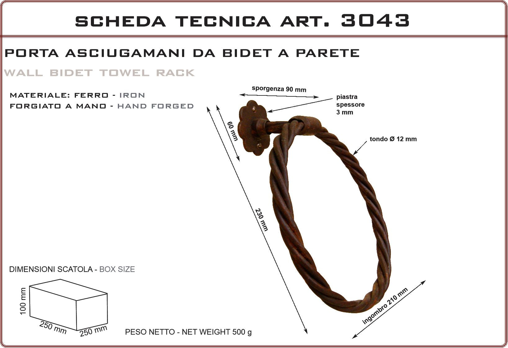 Porta asciugamano da parete per bidet in ferro forgiato. Prodotto artigianale realizzato in Italia, particolarmente adatto per ville di campagna, casali in pietra , rustici, agriturismi , country houses, cascine, residenze d' epoca, masserie e masi. La finitura in ferro vecchio è realizzata con prodotti antiruggine e finita con cere antichizzanti color ruggine. Essendo eseguita a mano può avere differenti tonalità tra un prodotto e l’altro. É possibile sopraverniciare il prodotto con qualsiasi vernice o trattamento.