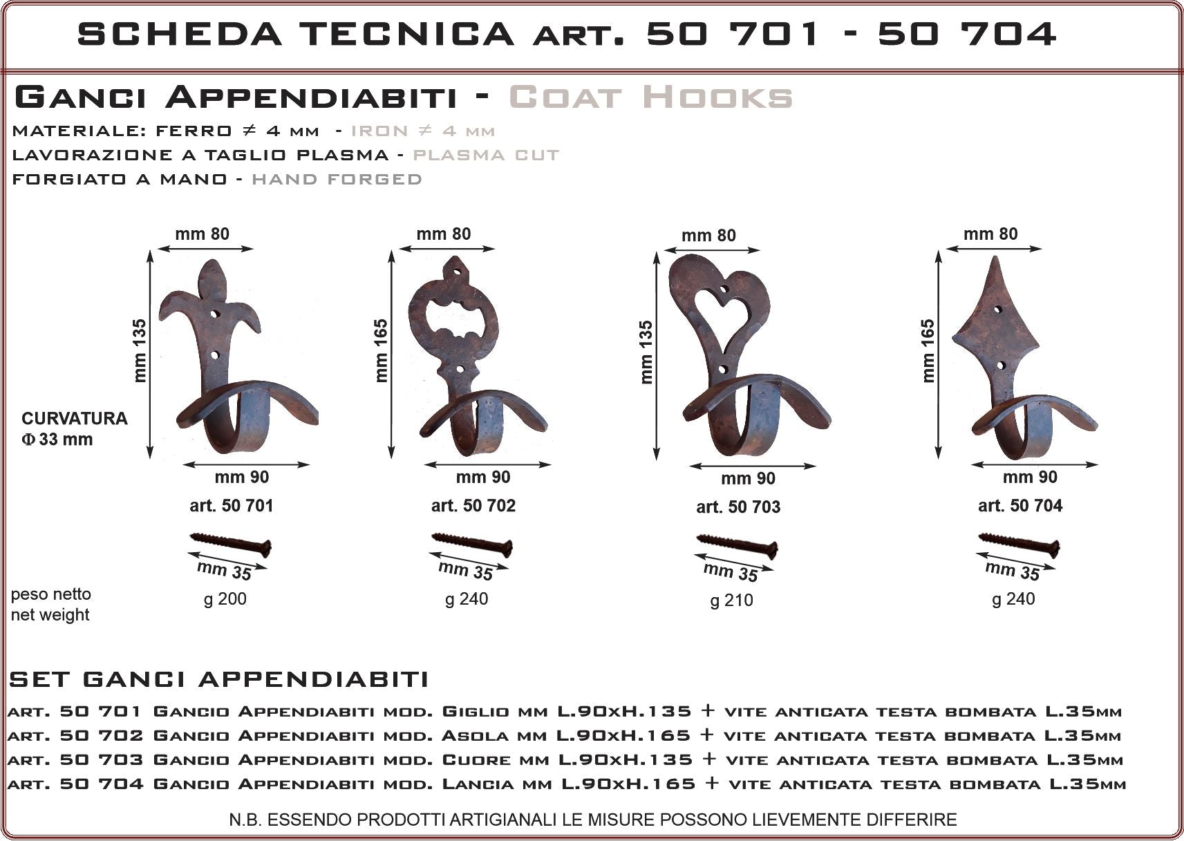 Gancio appendiabiti modello lancia in ferro tagliato al plasma, forgiato e battuto a mano. Prodotto artigianale realizzato in Italia. Disponibile in 4 modelli. Particolarmente adatto per ville di campagna, casali in pietra e rustici, agriturismi e country houses, cascine, residenze d' epoca, masserie, masi. La finitura ferro vecchio è realizzata con prodotti antiruggine adatti anche per esterno e finita con cere antichizzanti color ruggine , è eseguita a mano e può avere differenti tonalità tra un prodotto e l’altro. E’ possibile sopraverniciare il prodotto con qualsiasi vernice o trattamento.