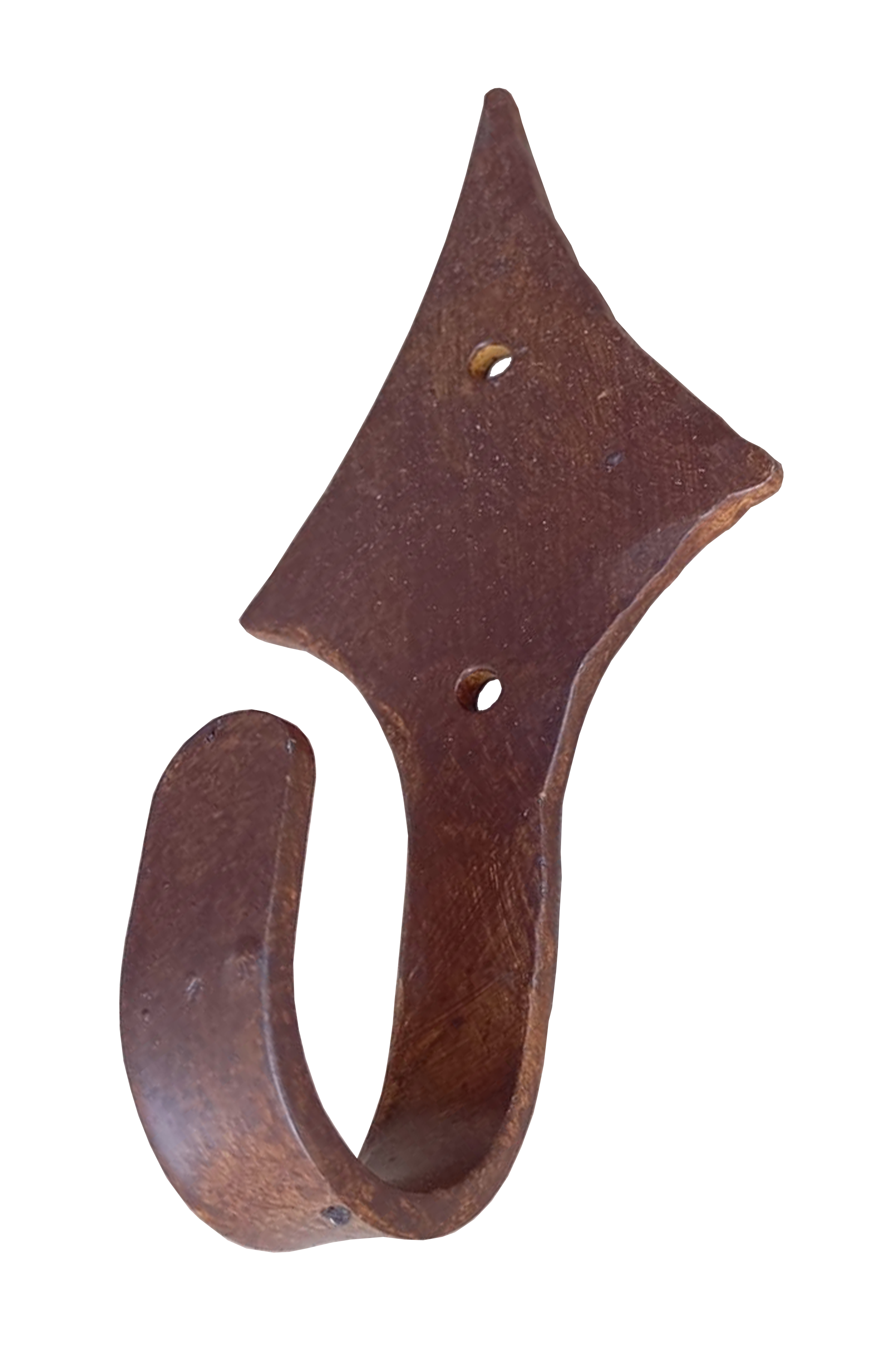 Spear model hook in plasma cut iron, forged and wrought by hand. Handcrafted product made in Italy. Available in 4 models. Particularly suitable for country villas, stone farmhouses and cottages, agritourisms and country houses, farmhouses, period residences, farms, farms. The old iron finish is made with anti-rust products also suitable for outdoor use and finished with rust-colored antique waxes, it is done by hand and can have different shades between one product and another. It is possible to overpaint the product with any paint or treatment.