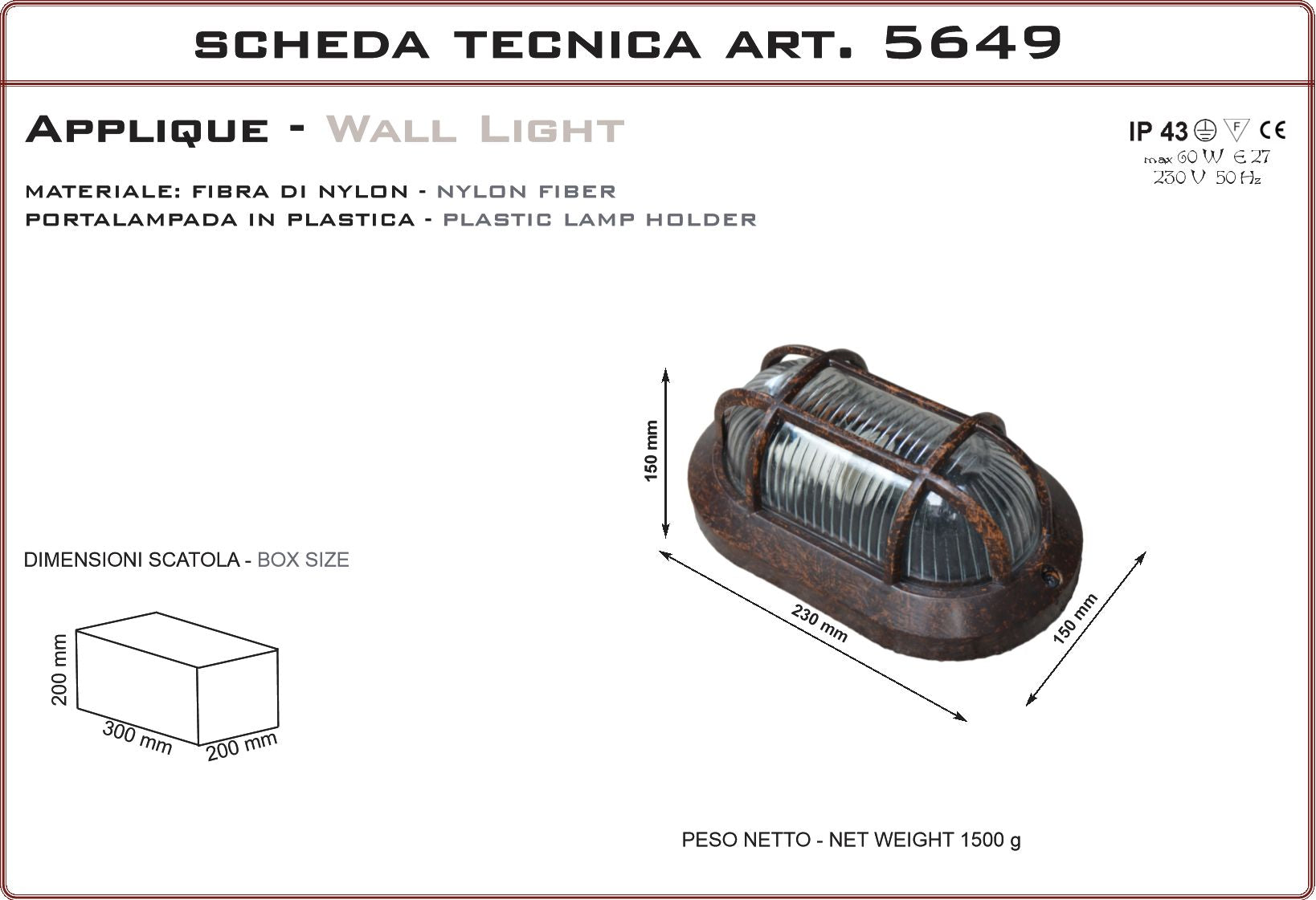 Small sized wall lamp, spiral, for outdoor use, nylon fiber and glass. Artisan product made in Italy, particularly suitable for country villas, stone and rustic farmhouses, farmhouses and country houses, farmhouses, period residences, farms and farmhouses. The lamp holder is in porcelain and being handmade, it can have different shades from one product to another. It is possible to overpaint the product with any paint or treatment.