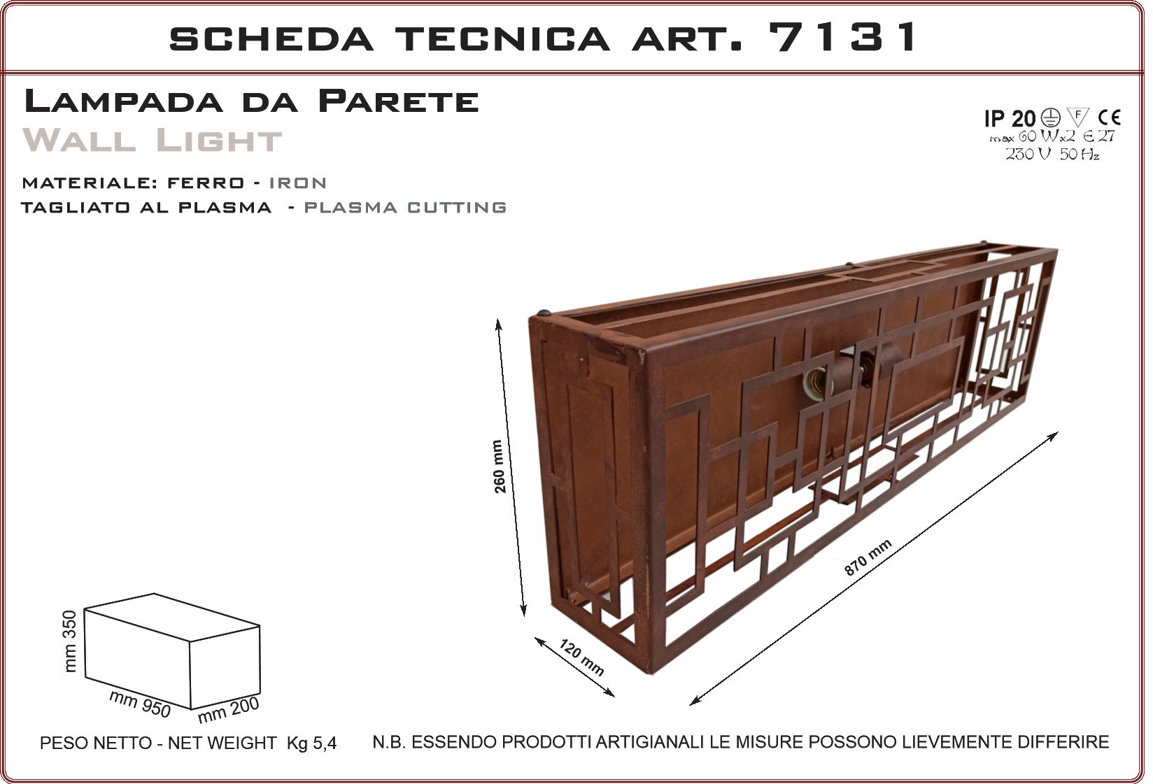 Lampada da parete in ferro, stile moderno. Prodotto artigianale realizzato in Italia, particolarmente adatto per ville di campagna, casali in pietra, rustici, agriturismi, country houses, cascine, residenze d'epoca, masserie e masi. . La finitura ferro vecchio è realizzata con prodotti antiruggine da esterno e finita con cere antichizzanti. Essendo eseguita a mano può avere differenti tonalità tra un prodotto e l’altro. É possibile sopraverniciare il prodotto con qualsiasi vernice o trattamento.