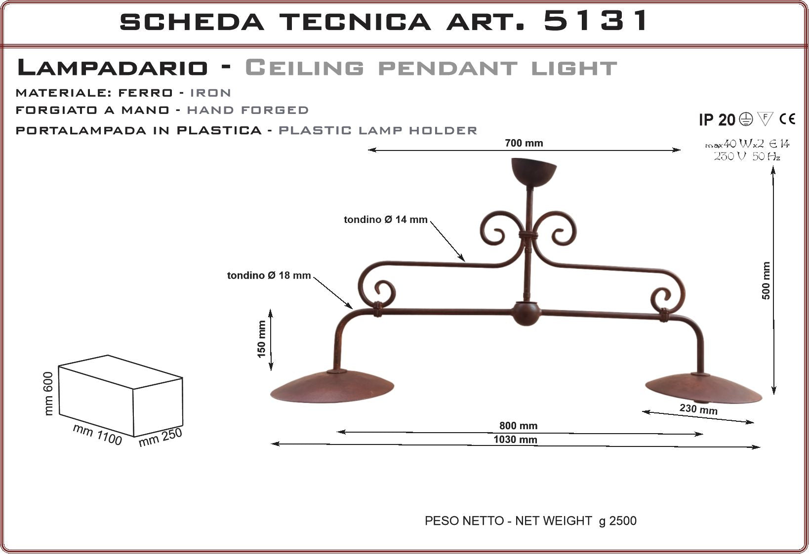 Lampadario a tre luci,con ricci decorativi, in ferro battuto forgiato a mano, stile arte povera. Prodotto artigianale realizzato in Italia, particolarmente adatto per ville di campagna, casali in pietra e rustici, agriturismi e country houses, cascine, residenze d' epoca, masserie, masi. Portalampada in ceramica rivestito in ferro con finitura in ferro vecchio realizzata con prodotti antiruggine da esterno e finita con cere antichizzanti color ruggine. Essendo eseguita a mano può avere differenti tonalità tra un prodotto e l’altro. É possibile sopraverniciare il prodotto con qualsiasi vernice o trattamento.