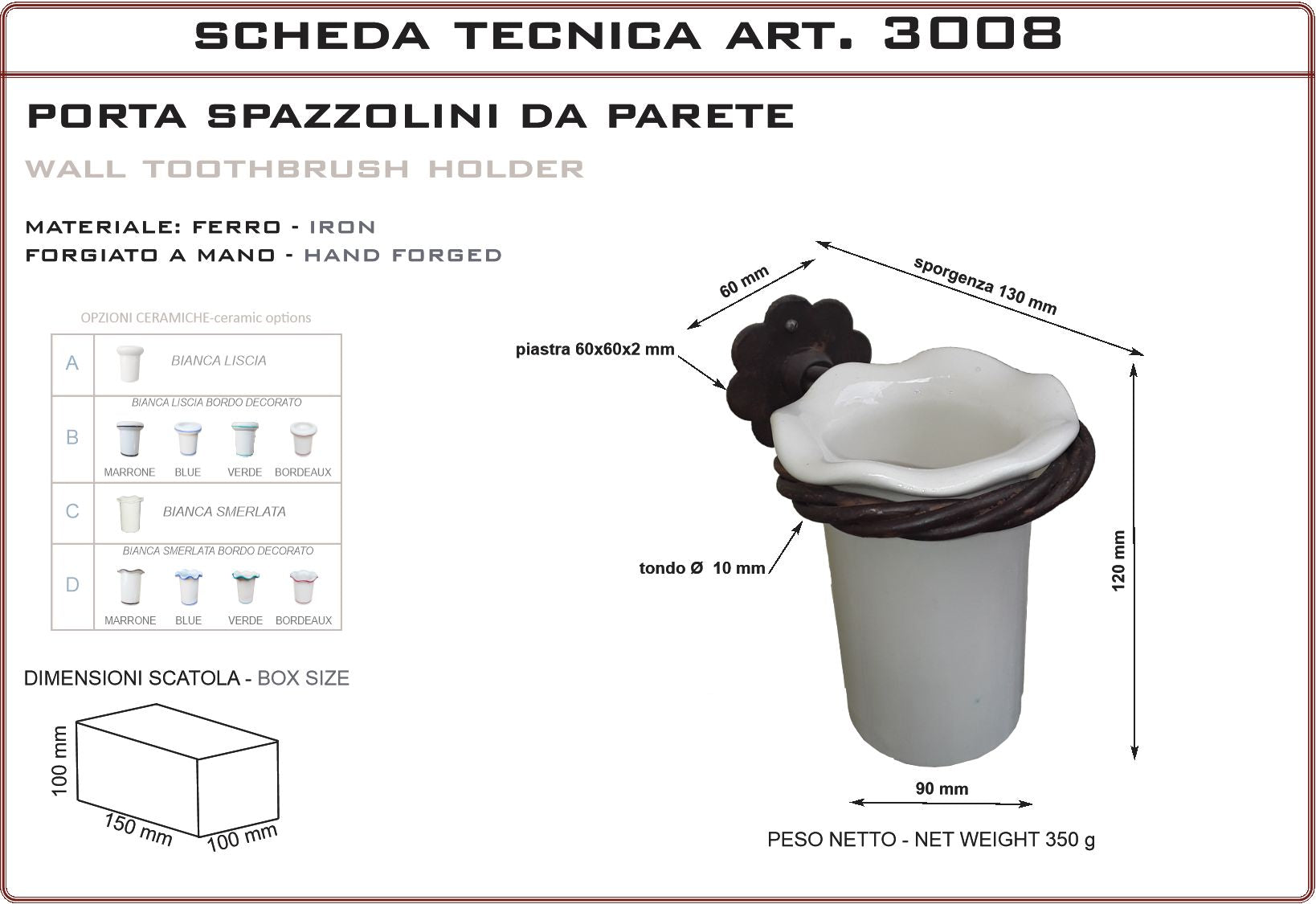 Porta spazzolini da parete in ceramica con supporto in ferro forgiato. Prodotto artigianale realizzato in Italia, particolarmente adatto per ville di campagna, casali in pietra, rustici, agriturismi, country houses, cascine, residenze d' epoca, masserie e masi. Finitura in ferro vecchio realizzata con prodotti antiruggine e finita con cere antichizzanti color ruggine. Essendo eseguita a mano può avere differenti tonalità tra un prodotto e l’altro. É possibile sopraverniciare il prodotto con qualsiasi vernice o trattamento.