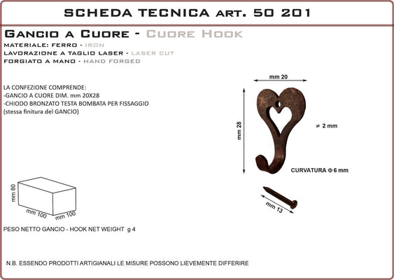 Gancio per quadri modello Cuore conf. 2 pezzi