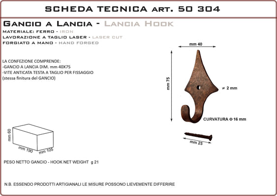 Hook for pictures Lancia model 2 pieces set